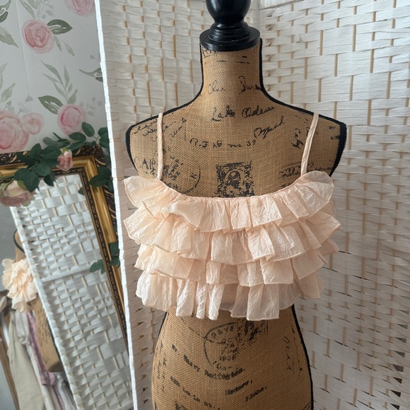 Light peach tiered ruffle crop top 🧡