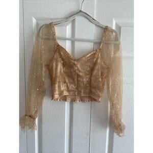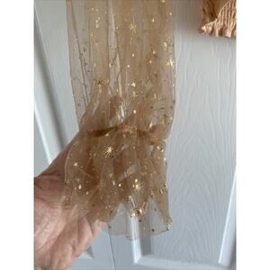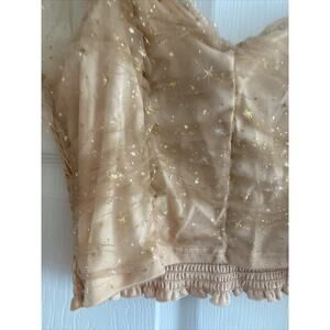 Peach Womens Medium Etherial Smocked Sheer Sleeve Victorian Feminine
