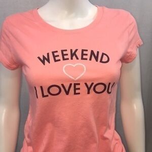 UEC peach t-shirt with capped sleeves. Size medium. “Weekend ❤️ I love you” Worn once. No marks, no stains. Love it