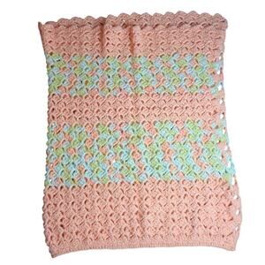 Peach Yellow White Crochet Granny Lap Size Afgan Blanket 40" x 30"