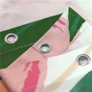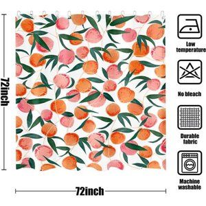 Brighten up your bathroom with this vibrant peach and green patterned shower curtain. The lively design adds a fresh touch to any decor.