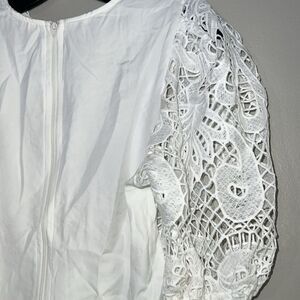 Peach balloon-sleeves crochet top new large