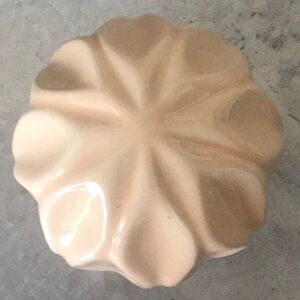 Beautiful 3 1/2” ceramic sphere with vertical wavy relief. Great preowned condition. Is a pale creamy pink/peach color with a hallow base so it can stand, or be put in a sphere bowl.