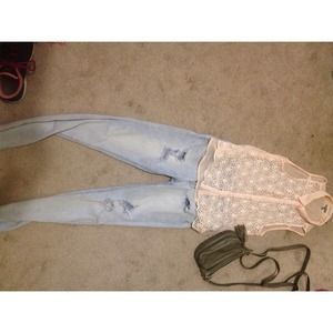 The front pattern of this shirt is an adorable floral lace. The back of the shirt is plain sheer. The peach color is perfect for spring and summer! I am willing to bundle all of these items.