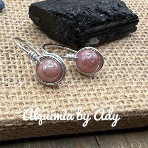 Peach moonstone silver Victorian drops spheres dangle earrings
