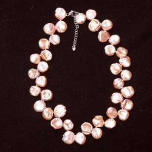 Lucoral Peach pearl necklace knotted between pearls with sterling clasp and extender chain. Very pretty color with nice lustre.