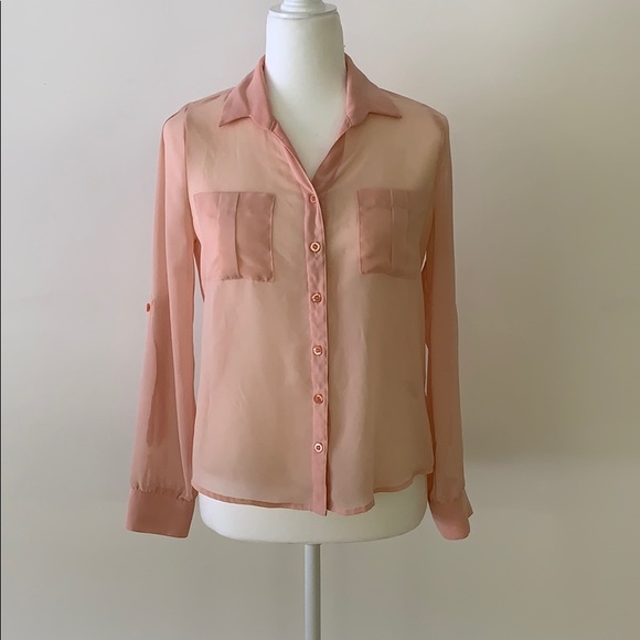 Peach polyester button down