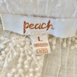 Peach semi sheer blouse SZ L with pocket embroidery and long sleeves Hi-Low hem