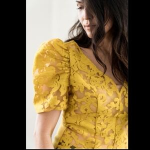 peach sheer embroidery blouse size medium with the puff sleeves juniors