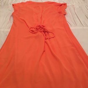 It has a couple of ruffles where the buttons are on the front. Has only been worn once and has no stains or smells. There is a tie up in the back which is shown in pictures 2 and 3.