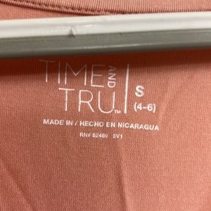 Time and Tru. Size small vneck peach top. Long in the back and short in the front. Runs big. Very light material