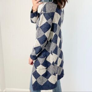 ✨ Peach Black & Grey Checkered Heavy Knit Cardigan✨