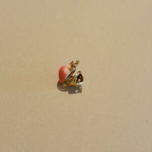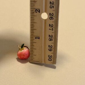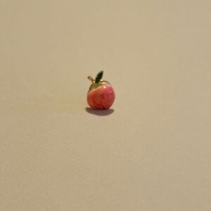 Add a touch of whimsy to your outfit with this charming pink and green enamel peach brooch. Perfect for any occasion.