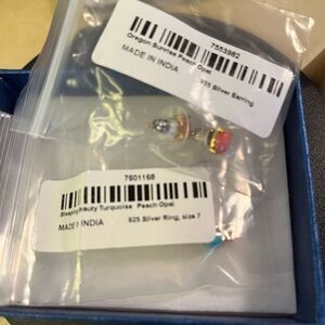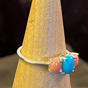Peach Opal And Sleeping Beauty Turquoise Ring 7 And Earring Set