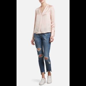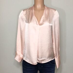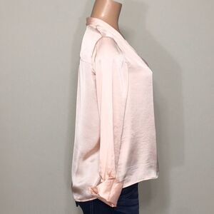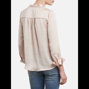Beautiful pullover style blouse. 100% polyester. Easy care. You can pull the sleeves up or leave them down for a straight look. Super comfortable!