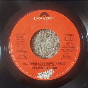 Peaches & Herb - SHAKE YOUR GROOVE THING/All YOUR LOVE (GIVE IT HERE) 45' Vinyl, PRE-OWNED. In good condition, gently used, tested and works 100 percent. Fast shipping via USPS Priority Mail.