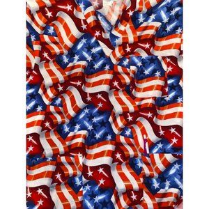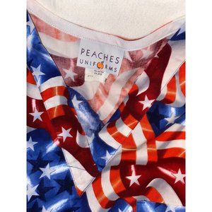 Peaches Patriotic Flag Medical V Neck Scrub Top