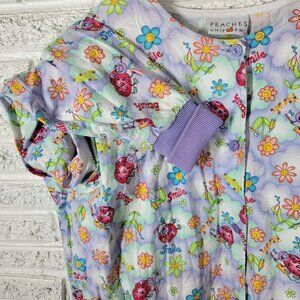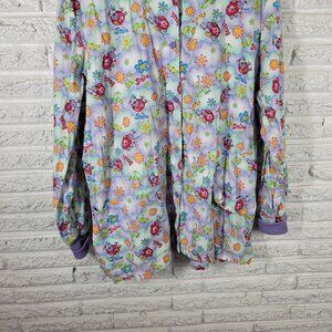 Peaches Unisex Scrub Top 2XL Plus Long Sleeve Button Up Dental Lavender NOV187E