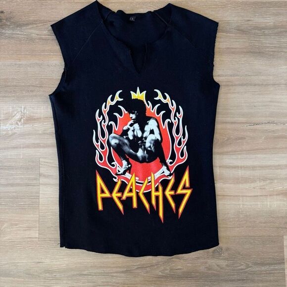 Peaches Merrill Nisker Black Graphic Shirt Size Large Cutoff Raw Punk Erotic