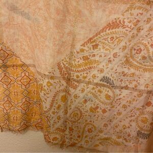 Peach metallic thread paisley print lightweight semi sheer scarf wrap fringe 27x72