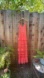 Elegant coral maxi dress with tiered ruffles, delicate lace overlay, adjustable spaghetti straps and a stretchy interior lining. Belt loops on the size to add a belt or leave simple. I purchased this at a boutique - never wore it.