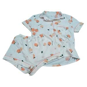 Peachy Crinkle Short Sleeve Shorts Pajama Set Womens Small