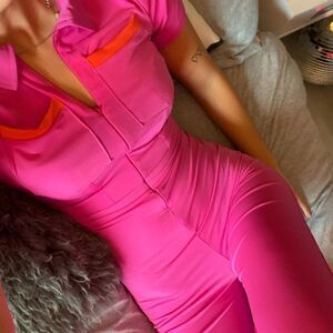 Peachy Den The Kernel Jersey Pink Jumpsuit Short Sleeves Size XS