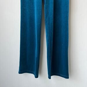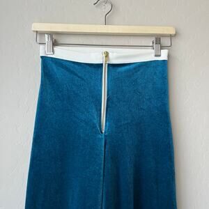 Peachy Den The Slinkys Teal Blue Velvet Velour Zip Front High Rise Pants Size S