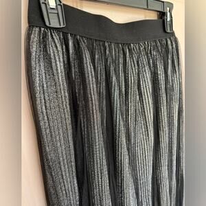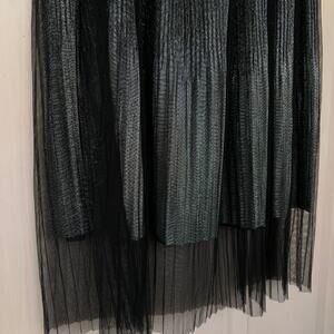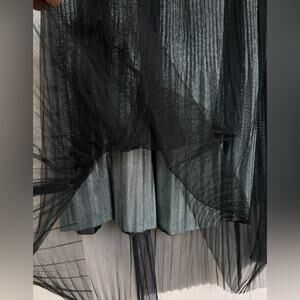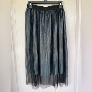 Peachy Girl Black Midi Metallic Silver Skirt Sheer Black Overlay | Size S/M