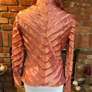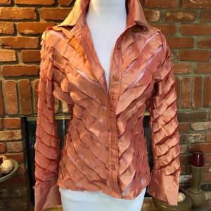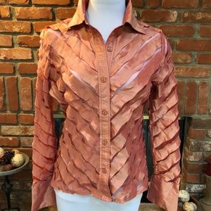 Stunning S/M Peachy Mesh Layered Shiny Small Versatile Evening Dressy Shirt Top*