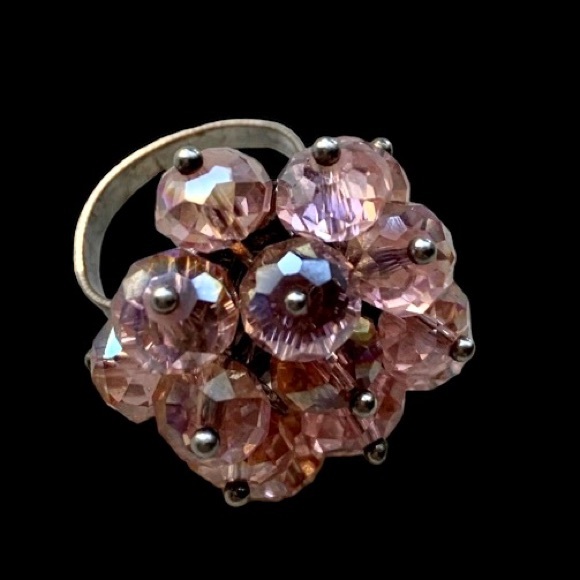 Peachy Pink Crystal Rhinestone Cluster Adjustable Fashion Ring Woman’s Jewelry