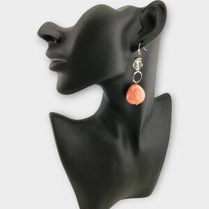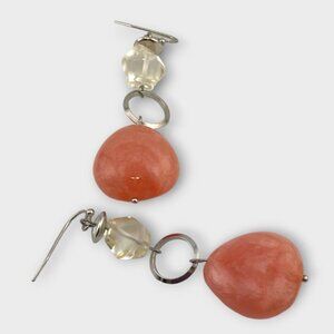 Sunny fun fashion peachy pink and clear beads with silver tone findings dangle below fish hook ear wires for pierced ear lobes. Lightweight these good looking earrings weigh only 12 grams for the pair. 2 1/2" tall and 7/8" wide. New without tags. Excellent condition.