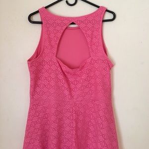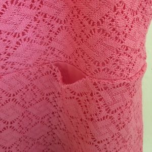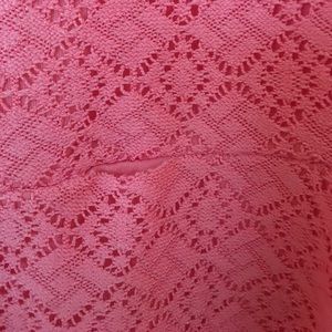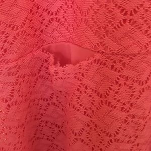 (please view pictures!) Would have sowed the holes back together but I couldn't find the right color! Still a really pretty peachy dress that has been worn a few times