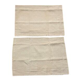 Tan, 100% Egyptian cotton, diamond pattern, matelasse bed coverlet with matching pillow shams by Peacock Alley. The bedspread measures about 95x106 so I think it is a king or California king. The shams measure about 30x22 end to end. Machine washable. Approximate measurements shown in photos. In great pre-owned condition.