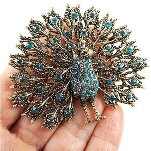 Peacock Blue Crystal Bling Brooch Womens Casual Rhinestone Sparkling Pin New