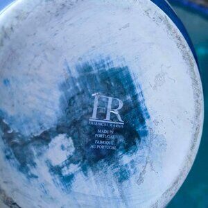 The vase measures approximately 10" high by 5.5" wide and is in perfect vintage condition with no visible anomalies. The "Faiancas Ramos" original sticker is on the underside of the vase.