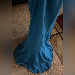 Elevate any special occasion with this stunning Carmen Marc Valvo Infusion Mermaid Evening Gown in the coveted Peacock Blue shade. Known for its couture-level construction and red-carpet silhouettes, this design combines elegance with modern drama.