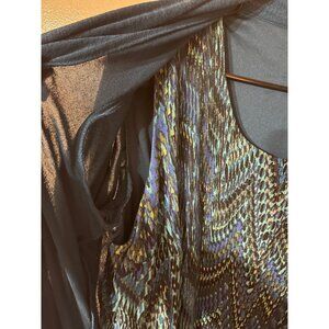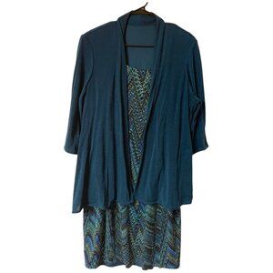Peacock Chevron Pattern Sleeveless Dress With 3/4 Sleeve Open Front Cardigan 2X
