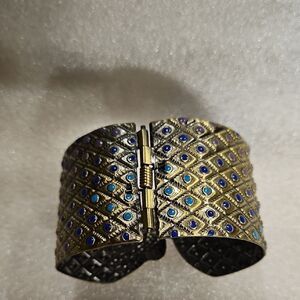 Peacock Design Gold tone and Blue Cuff Bracelet