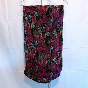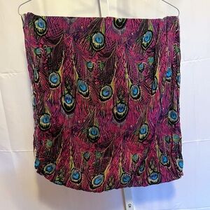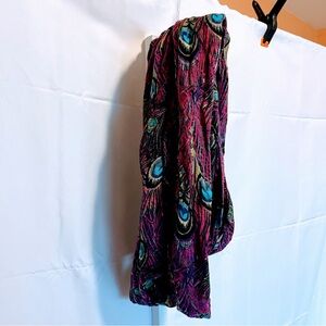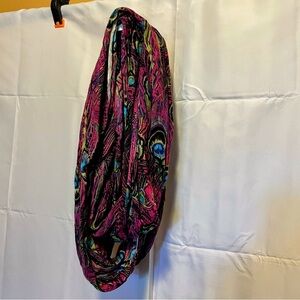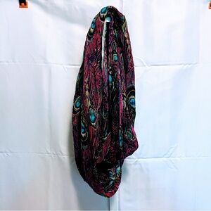 Peacock feather, infinity scarf, double loop scarf, circle scarf, lightweight scarf, boho, vibrant print, bold design, nature-inspired, bohemian fashion, global-inspired, festival accessory, vacation, resort, art teacher.