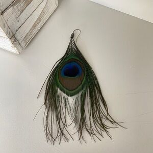 Beautiful blue and green peacock feather earring approximately 5” long. ONLY ONE EARRING.