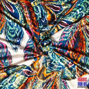 Peacock Feathers Red & Green With Micro Brush Tones Stretch Poly-Spandex Print Fabric 58" Wide
