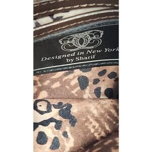 17x14x4 - This one is not perfect - the charm did make a small rub mark see photo. The handle, well the purse was used. see photo. Otherwise very clean with imperfections.appears to be made of synthetic materials. Super Cool Purse.