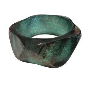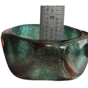Peacock Lucite Statement Bangle Bracelet Swirled Glitter Green Red Geometric MCM
