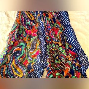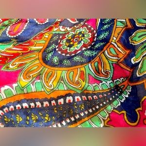 This scarf reminds me of a peacock’s pattern. Good condition.