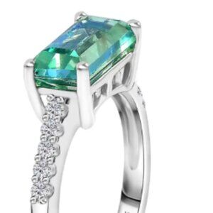 Peacock Quartz (Triplet) and White Zircon Ring in Platinum Over Sterling Silver 1.40 ctw