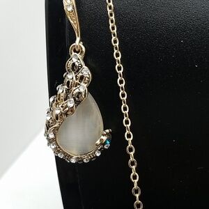 Peacock Rhinestone & Teal Stone 16" Necklace & Earrings Gold Tone Set