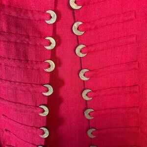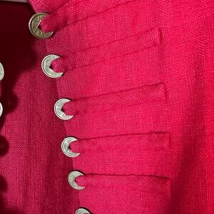 Peacock Ways women's blazer jacket red black Asian coin button detail