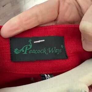 Peacock Ways women’s blazer jacket red black Asian coin button detail