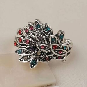 Peacock Multicolor Rhinestone Cocktail Ring One Size
